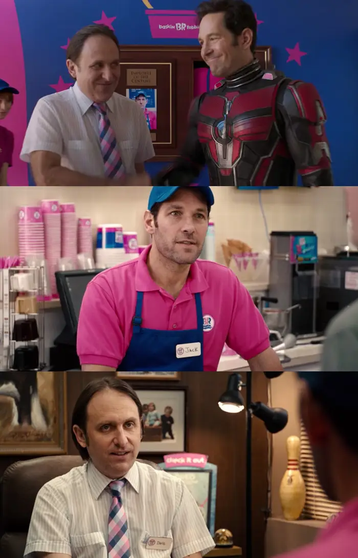 첫 번째 "앤트맨" 영화에 대한 콜백에서 Scott은 그의 매니저인 Dale과 함께 Baskin Robbins에서 보입니다.